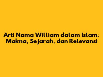 Relevansi nama William dalam konteks Islam terletak pada makna yang terkandung di dalamnya dan keselarasan dengan nilai-nilai Islam. Meskipun bukan nama yang berasal dari tradisi Arab atau Islam, arti nama William, yaitu "pelindung yang kuat" atau "kehendak yang kuat", sejalan dengan nilai-nilai yang ditekankan dalam Al-Quran dan ajaran Nabi Muhammad SAW. Dalam Islam, kekuatan iman, perlindungan diri, dan tekad yang kuat dalam menjalankan ajaran agama sangat penting. Dengan demikian, nama ini dapat dianggap sebagai refleksi dari nilai-nilai Islam yang universal.