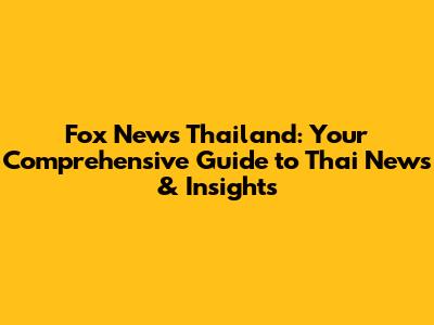 Decoding Fox News Thailand: What You Need to Know