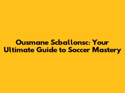 Ousmane Scballonsc: Your Guide To Mastering Soccer