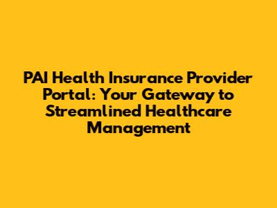 PAI Health Insurance: Access The Provider Portal