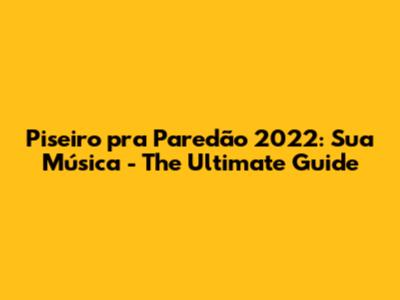 Piseiro Pra Paredão 2022: Sua Música - The Ultimate Guide