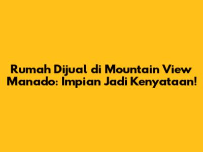 Siapa sih yang gak pengen punya rumah dengan pemandangan indah, udara segar, dan lingkungan yang nyaman? Nah, kalau guys lagi cari rumah impian di Manado, khususnya di daerah Mountain View, kalian berada di tempat yang tepat! Artikel ini akan membahas secara mendalam tentang rumah dijual di Mountain View Manado, mulai dari keuntungan lokasi, tips memilih rumah, hingga informasi penting lainnya yang perlu kalian tahu. Yuk, simak selengkapnya!